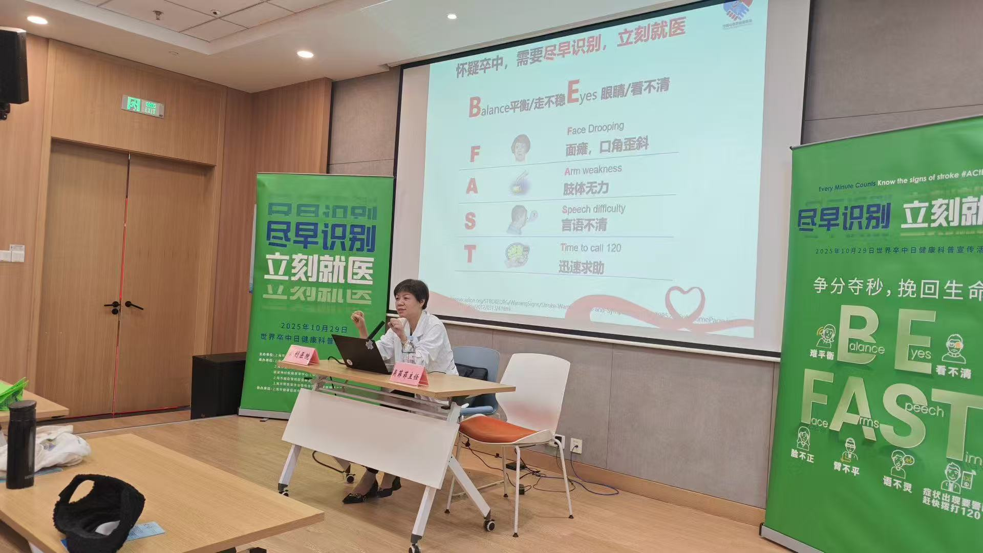 系列活动于10月28日率先启动。当日下午,神经内科张独轶主治医师在院内举办了《“卒”不及防——早防早治、远离卒中》健康讲座,为患者及家属系统讲解了卒中防治知识,现场互动热烈,收获一致好评。