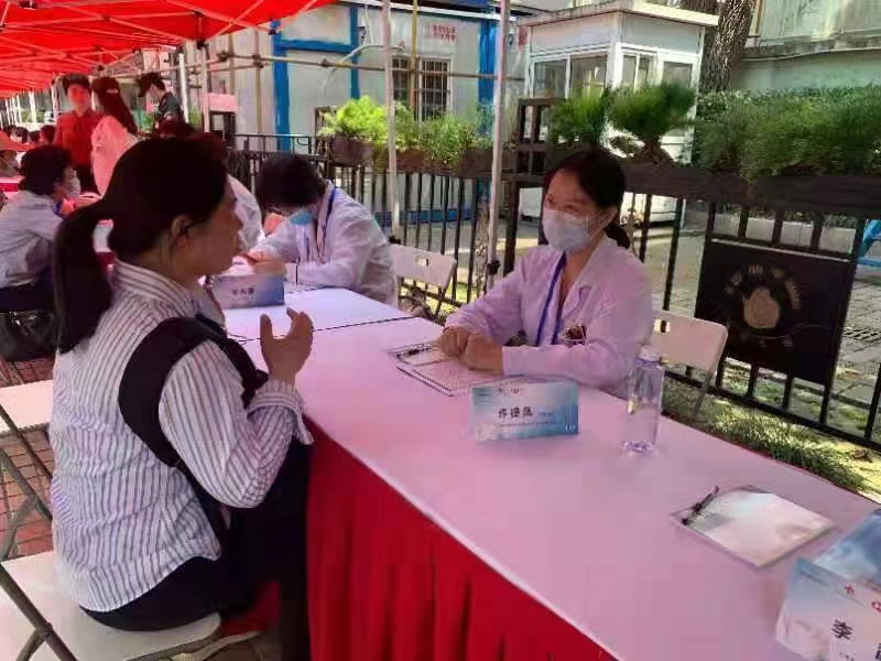 上海市浦东新区公利医院呼吸与危重症医学科主任医师许德凤、中医内科副主任医师徐佩文、妇产科副主任医师李茜一早便来到复兴公园活动现场,与其他百余位来自卫生健康系统劳模、“医德楷模”和名医专家志愿者共同为市民提供多学科义诊。