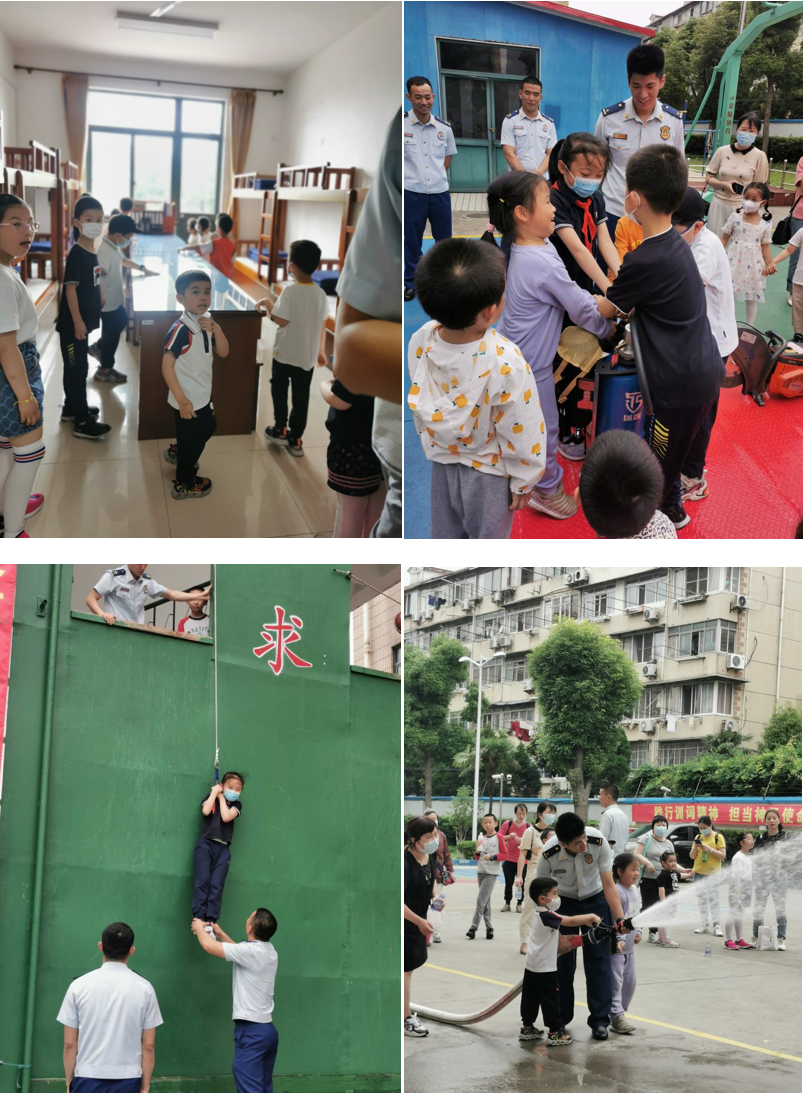 家长和孩子们先后参观了消防展览馆和营区、消防装备和车辆,进行了消防项目体验。消防员们为孩子们讲述了消防战士英勇的救火事迹,对如何报警、自救、逃生进行了详细解说,并实战演示了绳索攀爬、消防设施的使用等。